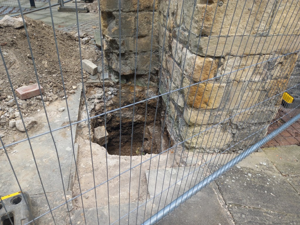 St Mary’s Guild used the property as its Guildhall until 1547 and it then passed into the ownership of the Lincoln City Council. The Bluecoat School took over the lease in 1614 until 1623 and major alterations were completed. The Norman House at the rear was built around 1618 and in the 18th century, the present north range was rebuilt. This was in commercial use as a maltings along with the Norman House. The south range was built in 1896 for C C Sibthorpe, and was a joiners and undertakers store, and of course gave the name to the current Sibthorpe Street. The building was purchased by City of Lincoln Council in 1938, but continued in commercial use as Lucas’s builders’ depot until 1981, when it was leased by the Lincoln Civic Trust. A restoration of the Guildhall was undertaken by the Trust in 1984, when the south range became St Peter at Gowt’s Parish Hall, and it was during these renovations that a section of the Roman Fosse Way complete with wheel ruts was discovered beneath the floor. This has been preserved and can be seen in the building today.